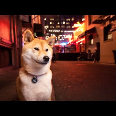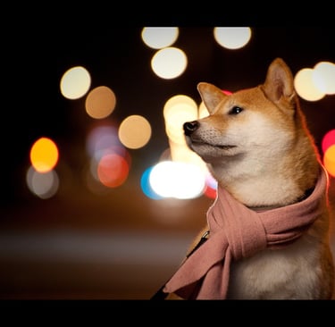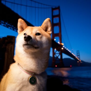Suki’s story begins in 2010, when photographer Jonathan Fleming captured his Shiba Inu against the soft lights of San Francisco. Wrapped in a small purple scarf, she carried herself with a quiet confidence that felt timeless. The photo traveled through early internet circles, finding its place among the growing fascination with Shiba expressions and captions that turned innocence into irony. Long before Dogecoin became a currency of culture, Suki’s image had already helped shape the look and feel of what the world would soon recognize as Doge.